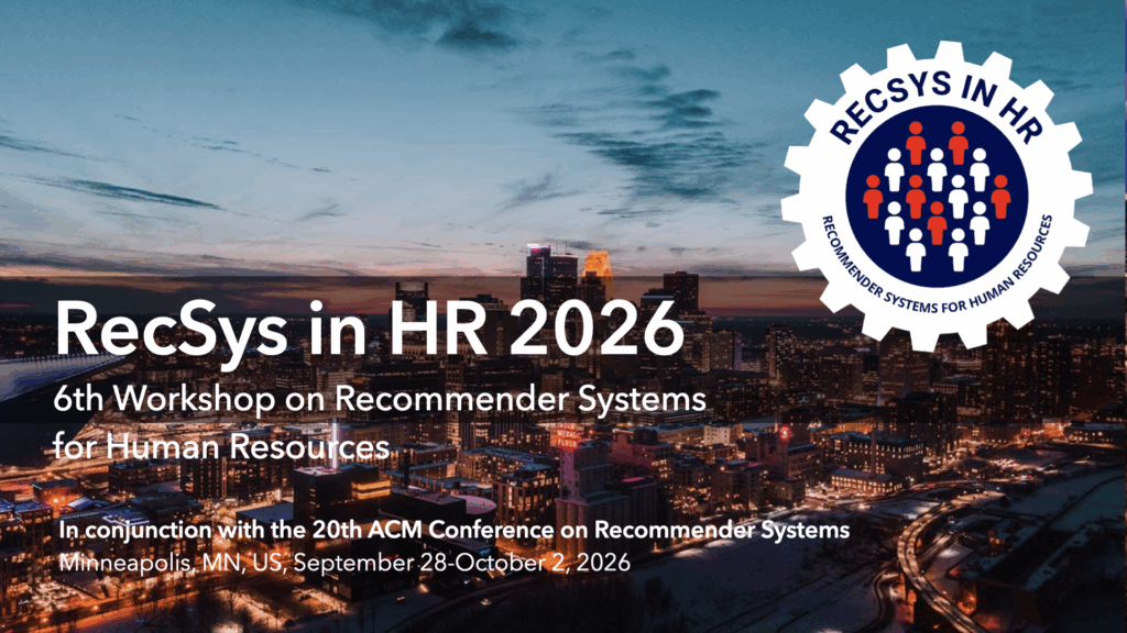 April 10, 2026: The website for the 2026 edition of the RecSys in HR workshop is online now!